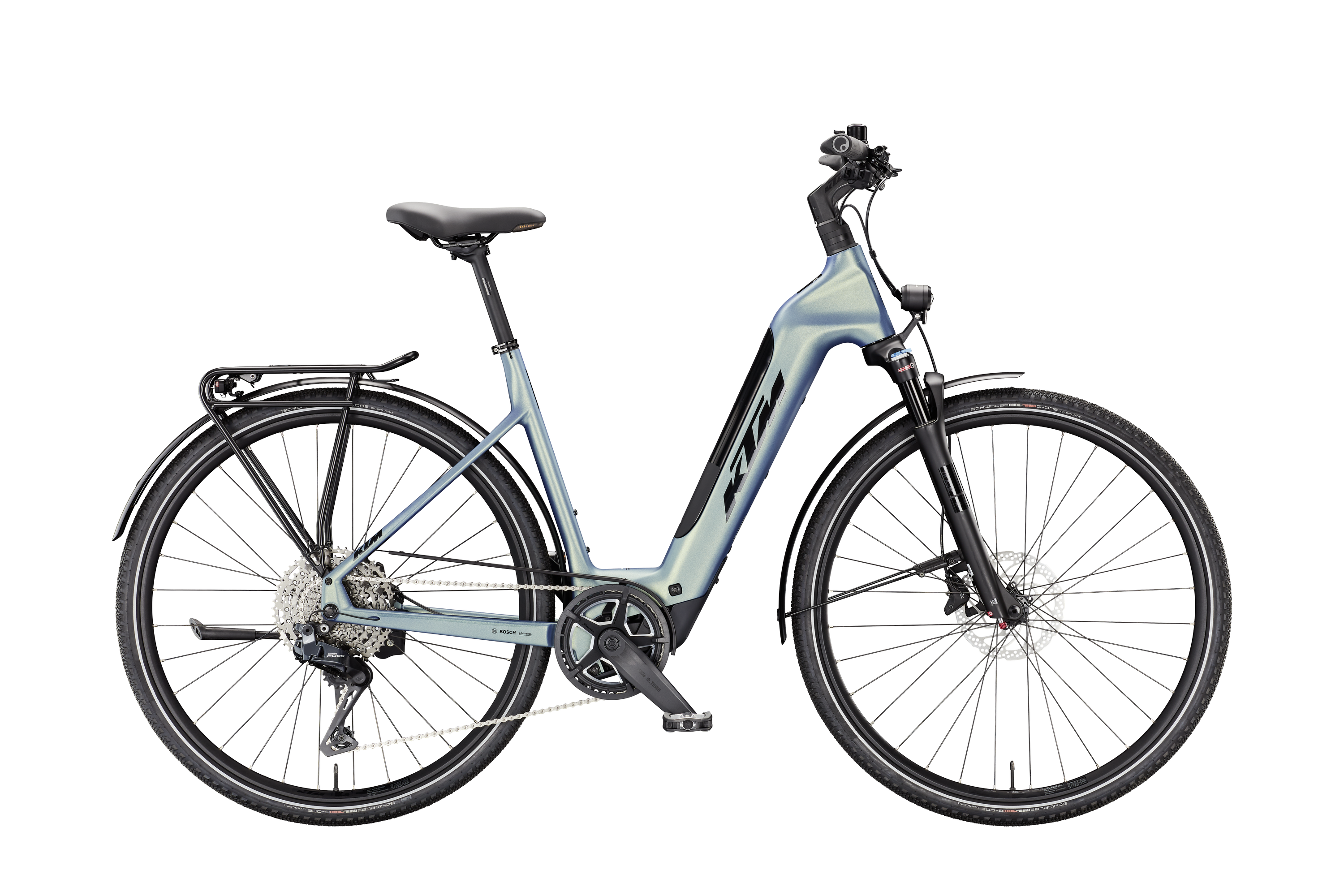 Rama: Macina Trekking On Premium Carb UDH|CPT400 Bosch BDU31/T4100 Widelec: Suntour NRX32-E Air LOR 63mm 15AH2x100 Tylna przerzutka: Shimano CUES Di2 U8050-11 SGS shadow Manetki: Shimano CUES Di2 EN605 Switch Hamulce: Shimano MT402 (3-F) / MT410 2-Piston Tarcze hamulcowe: Shimano RT30 CL 180 Opona przód: Schwalbe G-One Overland 45-622 Opona tył: Schwalbe G-One Overland 45-622 Kierownica: KTM TEAM II low rizer 640mm Mostek: KTM Line +20° ICR Stery: Acros AICR intern 1.1/8"-1.5" angle lim Chwyty: ERGON GS1 Siodło: Selle Royal Explora Gel Sztyca: KTM TEAM II 27.2/300 Zacisk: KTM TEAM Light CL-FJ21 - 31,8mm Korba: KTM E-TEAM2 ISIS 170mm Q8 Łańcuch: KMC e500 LG e-bike Kaseta: Pedały: Trekking-Pedal VP-616 anti-slip Oświetlenie przód: Litemove SEC-150 150Lux down Oświetlenie tył: AXA Juno Bagażnik: KTM light 42 snap-it 2.0/monkeyload|rack clip Podpórka: Hebie 28" adjustable