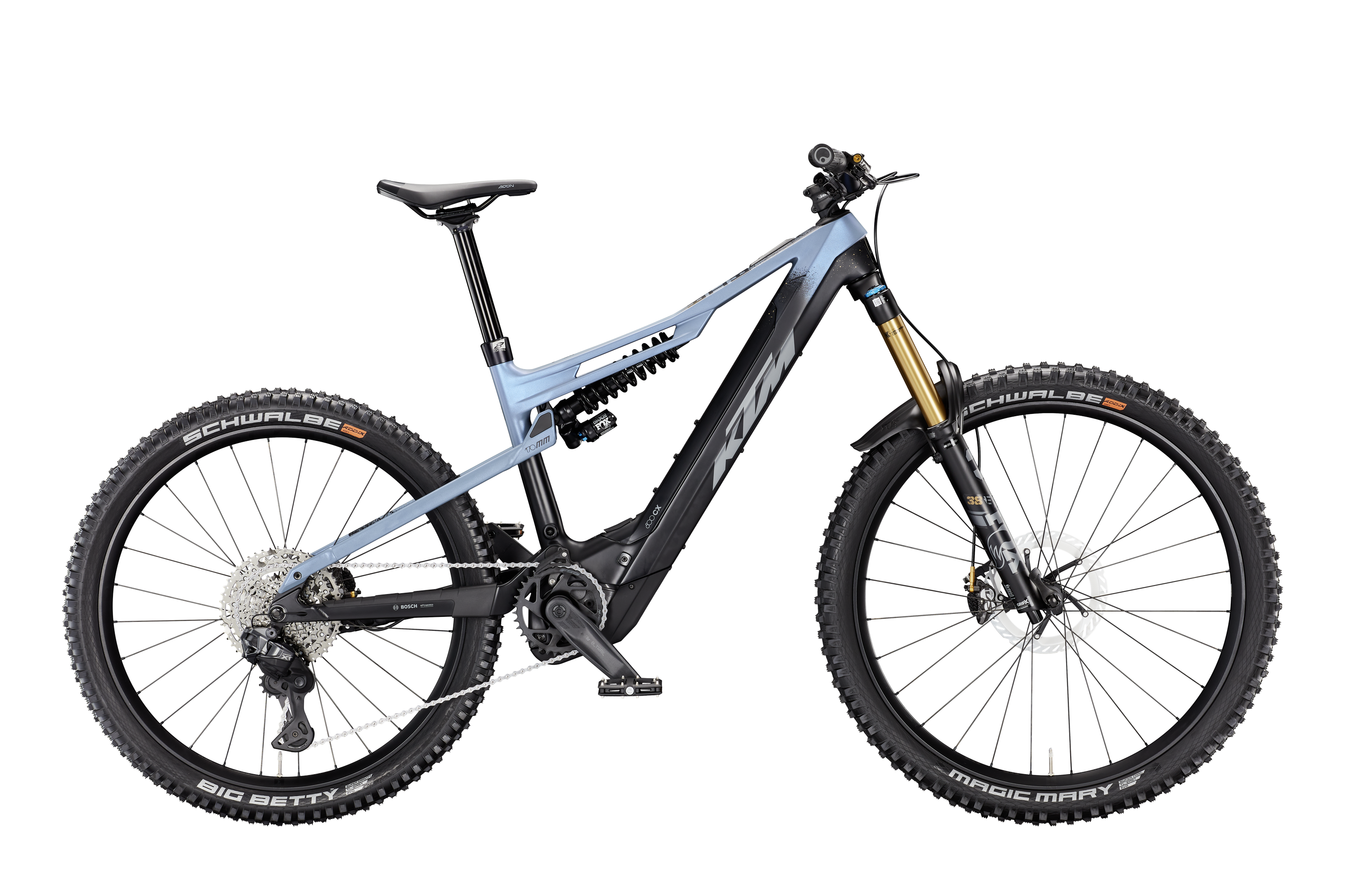 Rama: Macina Prowler Dimmix CB 170 UDH|Bosch BDU38/M5230 Widelec: FOX 38 Float 29" Factory E 180mm 15x110 Damper: FOX DHX2 PerformanceElite 2-Pos 250x75 Tylna przerzutka: Shimano Deore XT Di2 M8260-11 LG SGS Manetki: Shimano XT Di2 SW-M8250 Hamulce: Shimano Saint M820 / M820 4-Piston Tarcze hamulcowe: Shimano CL800 CL 203 freeza Koła: KTM E-TEAM Trail 29 CL 110/15TA|622x30TC TLR by DT / KTM E-TEAM Trail 27 CL 148/12TA|584x30TC SS TLR by DT Opona przód: Schwalbe Magic Mary Evo SuperTrail TLE 65-622 Opona tył: Schwalbe Big Betty Evo SuperGravity TLE 65-584 Kierownica: KTM TEAM Trail35 rizer25 800mm Mostek: KTM TEAM Trail35 Stery: Acros AICR intern 1.1/8"-1.5" angle lim Chwyty: Ergon GE10 Siodło: Fizik Terra Aidon X5 SAlloy Sztyca: Eightpins H01 Hydraulic -6X-M Korba: KTM E-TRAIL2 ISIS 160mm Q12 Łańcuch: KMC e11 Sport EPT e-bike Kaseta: Pedały: MTB-Pedal flat VP-539 nylon