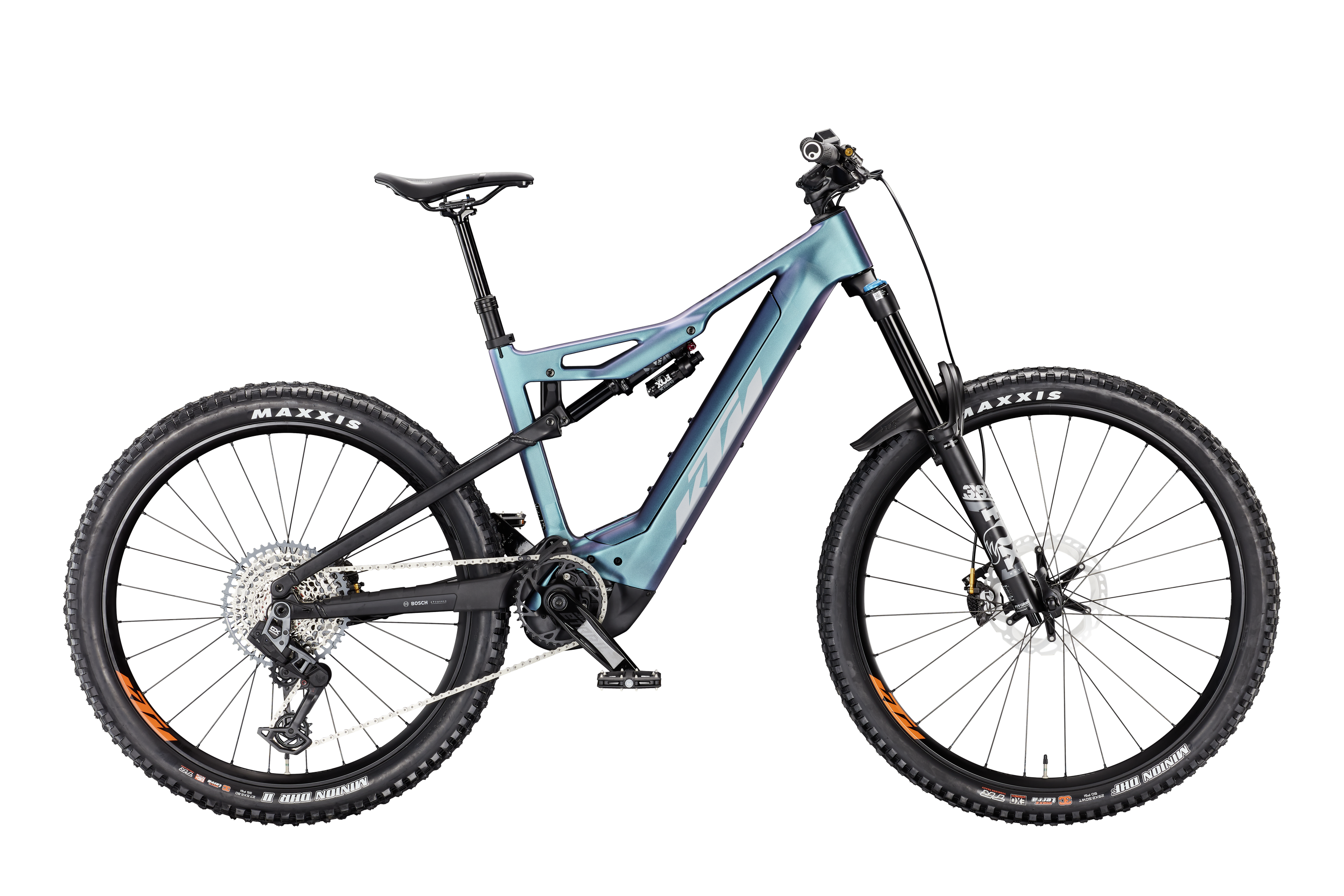 Rama: Macina Prowler Dimmix Carbon 170 UDH|PT750 Bosch BDU37/M2236 Widelec: FOX 38 Float 29" Rhythm E 180mm Damper: FOX Float X Performance 250x75 Tylna przerzutka: SRAM GX Eagle Transmission 12speed Manetki: SRAM POD AXS Controller Hamulce: Shimano Saint M820 / M820 4-Piston Tarcze hamulcowe: Shimano MT800 CL 203 freeza Koła: KTM E-COMP Trail 29 CL 110/15TA|622x30TC TLR by DT / KTM E-COMP Trail 27 CL 148/12TA|584x35TC TLR by DT Opona przód: Maxxis Minion DHF 3C-MaxxTerra/EXO/TR 63-622 Opona tył: Maxxis Minion DHR II 3C-MaxxTerra/EXO/TR 70-584 Kierownica: KTM TEAM Trail35 rizer25 800mm Mostek: KTM TEAM Trail35 Stery: Acros AICR intern 1.1/8"-1.5" angle lim Chwyty: Ergon GA20 Siodło: Selle San Marco Ground Short Open Fit Narrow Sztyca: KTM COMP dropper internal 30.9 T:150 Zacisk: KTM Line JD-SC140A - 35,0mm Korba: KTM E-TRAIL ISIS 160mm Q16 Łańcuch: SRAM GX T-Type 12s Kaseta: Pedały: MTB-Pedal flat VPE-527 alloy