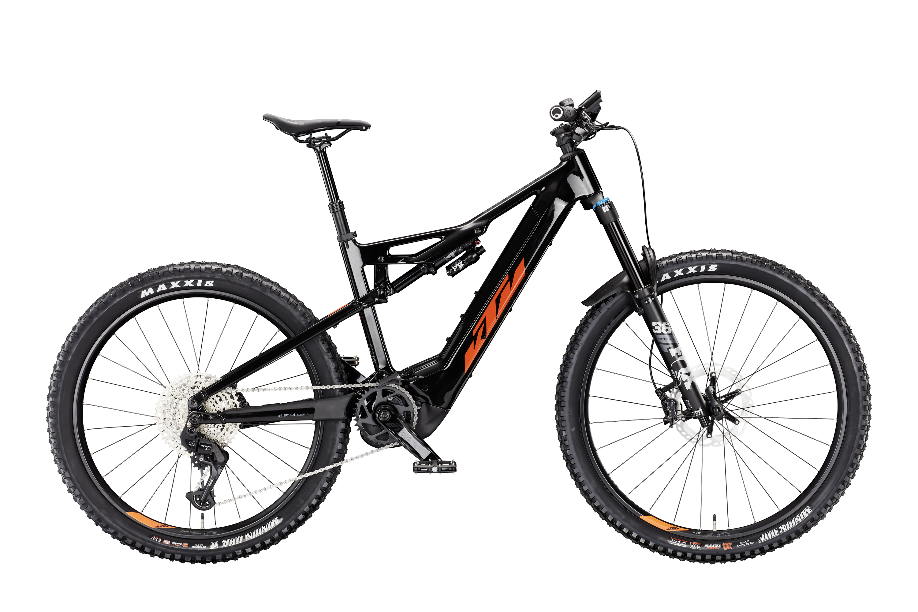 Rama: Macina Kapoho Dimmix Carbon 160 UDH|PT750 Bosch BDU37/M2246 Widelec: FOX 36 Float 29" Perf E 160mm 15x110 Damper: FOX Float X Performance 2Pos 250x70 Tylna przerzutka: TRP RD-M8000E 12speed Manetki: TRP Switch SL-M8000E Hamulce: Shimano Deore XT M8100 / M8120 4-Piston Tarcze hamulcowe: Shimano MT800 CL 203 freeza Opona przód: Maxxis Minion DHF 3C-MaxxTerra/EXO/TR 63-622 Opona tył: Maxxis Minion DHR II 3C-MaxxTerra/EXO/TR 70-584 Kierownica: KTM TEAM Trail35 rizer25 800mm Mostek: KTM TEAM Trail35 Stery: Acros AICR intern 1.1/8"-1.5" angle lim Chwyty: Ergon GA20 Siodło: Selle San Marco Ground Short Open Fit Narrow Sztyca: KTM COMP dropper internal 30.9 T:150 Zacisk: KTM Line JD-SC140A - 35,0mm Korba: KTM E-TRAIL ISIS 160mm Q16 Łańcuch: Shimano M6100-12 Kaseta: Pedały: MTB-Pedal flat VPE-527 alloy