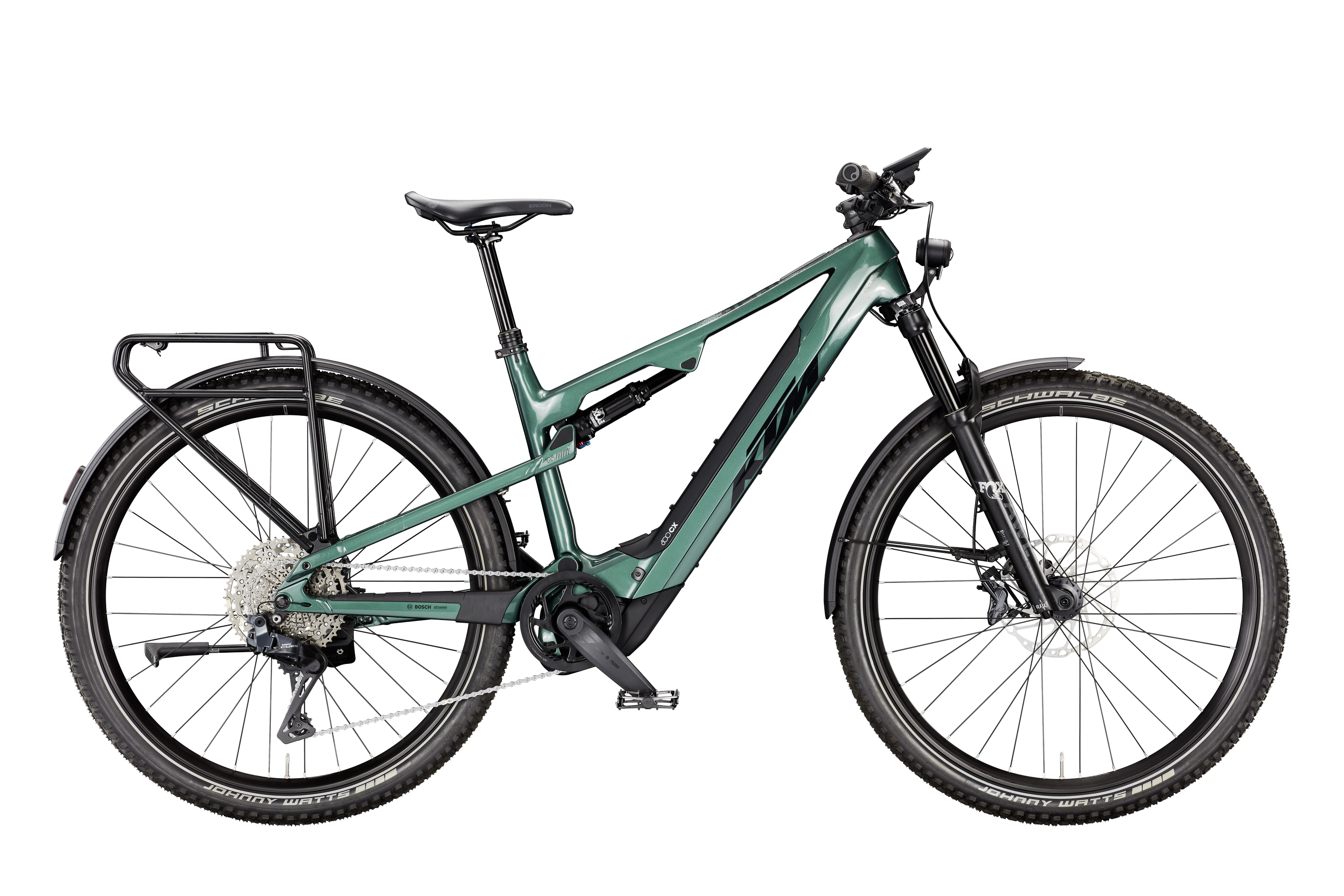 Rama: Macina Chacana Al6061 125 UDH|PT800 Bosch BDU38/M5290 Widelec: FOX 34 Float 29" AWL E 130mm 15x110 Damper: FOX Float Rhythm 2Pos 230x57,5 Tylna przerzutka: Shimano CUES Di2 U8050-11 SGS shadow Manetki: Shimano CUES Di2 EN605 Switch Hamulce: Shimano Deore M6100 / M6120 4-Piston Tarcze hamulcowe: Shimano RT64 CL 203 Koła: Mavic E-Crossride 29 CL 110x15TA|622x30TSS TLR / Mavic E-Crossride 29 CL 148x12TA|622x30TSS HG TLR Opona przód: Schwalbe Johnny Watts Perf. DD RaceGuard 60-622 Reflex Opona tył: Schwalbe Johnny Watts Perf. DD RaceGuard 60-622 Reflex Kierownica: KTM COMP Trail35 rizer15 760mm Mostek: KTM TEAM Trail35 Stery: Acros AICR intern 1.1/8"-1.5" angle lim Chwyty: Ergon GA30 Siodło: Ergon SM10 E-Mountain Sztyca: KTM COMP II dropper internal 34.9 T:150 Zacisk: KTM TEAM Light CL-FJ21 - 39,0mm x 12 Korba: KTM E-TEAM2 ISIS 170mm Q8 Łańcuch: KMC e500 LG e-bike Kaseta: Pedały: MTB-Pedal flat VPE-527 alloy Oświetlenie przód: Litemove AE-200 170-200Lux HighBeam Oświetlenie tył: Supernova TL3Z Bagażnik: KTM RACKTIME ALUMEE Podpórka: KTM 28" adjustable MY2025