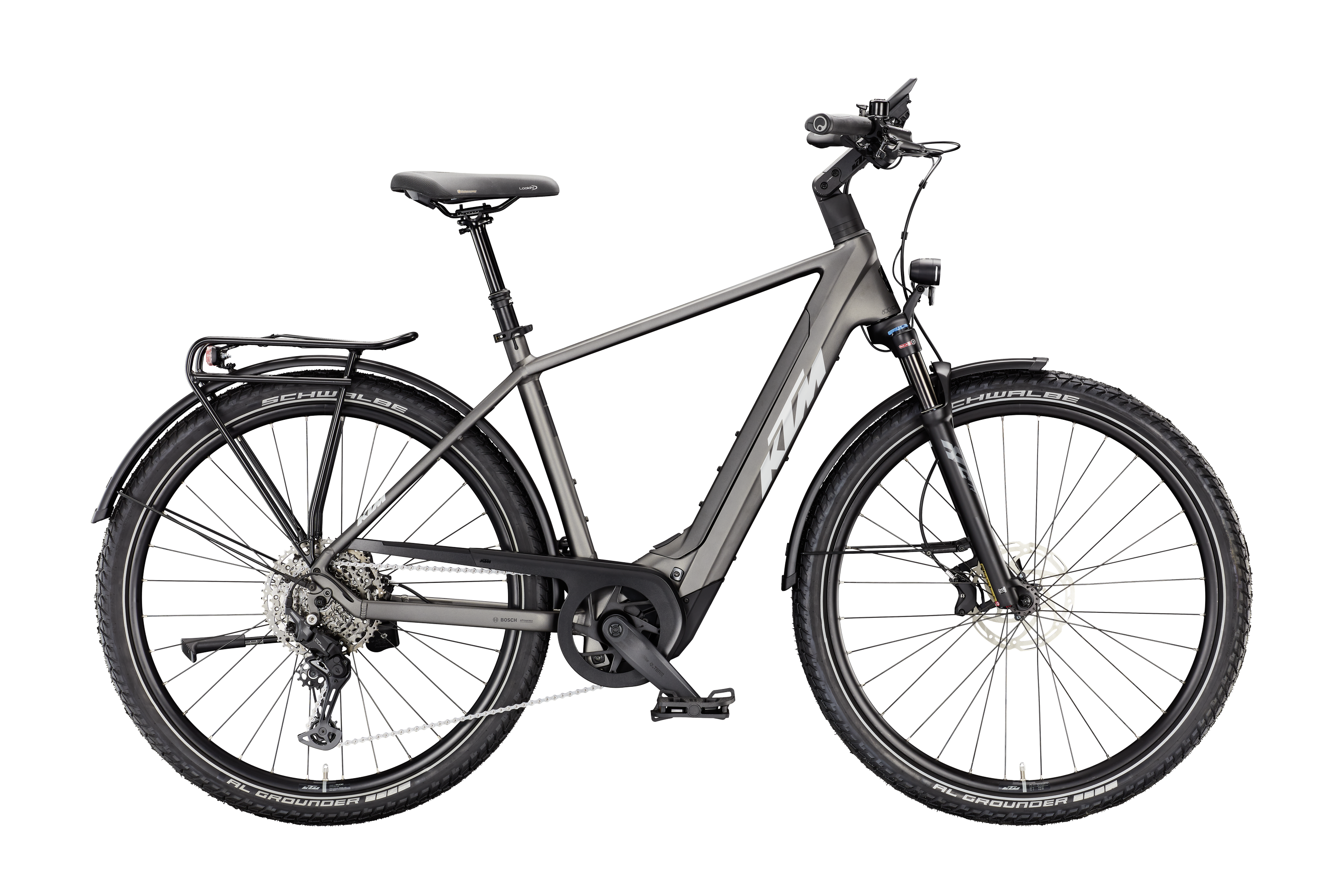 Rama: Macina Trekking Onroad Alloy 6061|PT800 Bosch BDU38/T5940 Widelec: Suntour XCR32 ATB Air 29" LOR 80mm Tylna przerzutka: Shimano CUES U6000-11/10 LG shadow+ Manetki: Shimano CUES U6000-11 display Hamulce: Tektro TKD-139 / HD-E730 4-Piston Tarcze hamulcowe: Tektro TR-45 2.3mm CL 180 Opona przód: Schwalbe Al Ground Perf. RaceGuard 60-622 Reflex Opona tył: Schwalbe Al Ground Perf. RaceGuard 60-622 Reflex Kierownica: Ergotec Lady Town 31,8 690mm Mostek: KTM Line adjust. 0-60° ICR Stery: Acros AICR internal 1.5"-1.5" Chwyty: GRIP ERGON GP10 Siodło: Selle Royal Lookin Sztyca: KTM Line dropper + suspension 30.9 T:100 Zacisk: KTM Line JD-SC99 - 34,9mm Korba: KTM E-TEAM2 ISIS 170mm Q8 Łańcuch: KMC e11 Sport EPT e-bike Kaseta: Pedały: Ergotec EP-2 pedal Oświetlenie przód: B&M IQ-XS 100-150Lux HighBeam Oświetlenie tył: B&M Toplight 2C Bagażnik: KTM light60 snap-it 2.0/monkeyload|childseat + rack clip Podpórka: KTM 28" adjustable MY2025