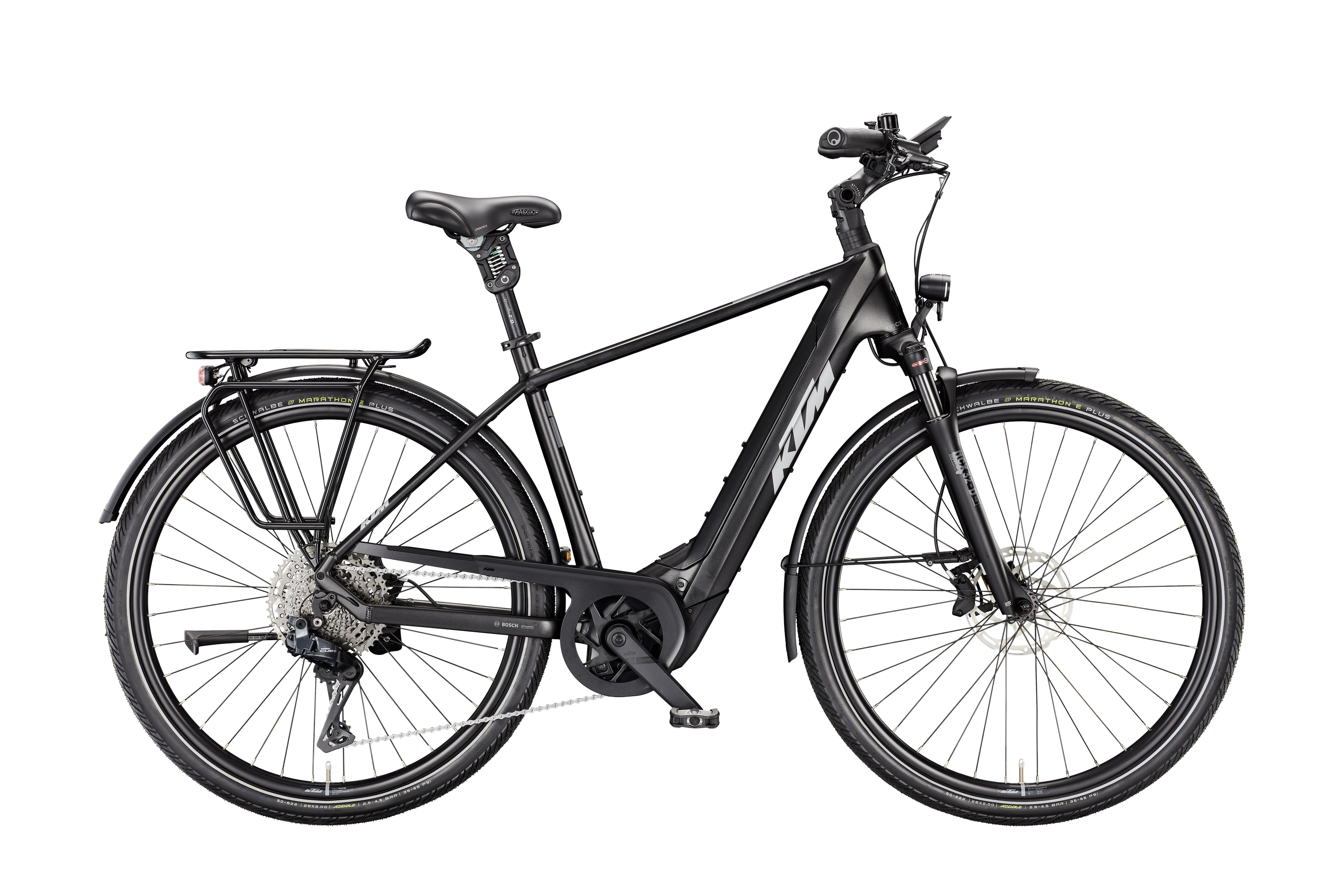 Rama: Macina Trekking Onroad Alloy 6061|PT800 Bosch BDU38/T5940 Widelec: Suntour NCX32-D coil LO 63mm (HD) 1 1/8 Tylna przerzutka: Shimano CUES Di2 U8050-11 SGS shadow Manetki: Shimano CUES Di2 EN605 Switch Hamulce: Tektro TKD-139 / HD-E730 4-Piston Tarcze hamulcowe: Tektro TR-45 2.3mm CL 180 Opona przód: Schwalbe Marathon E-Plus Perf. DualGuard 50-622 Reflex Opona tył: Schwalbe Marathon E-Plus Perf. DualGuard 50-622 Reflex Kierownica: Ergotec Lady Town 31,8 690mm Mostek: Ergotec Swell RE70i adjust. 0-60° Stery: Acros AICR intern 1.1/8"-1.5" angle lim Chwyty: GRIP ERGON GP10 Siodło: Selle Royal Viaggio Sztyca: bySchulz G.2 ST suspension 30.9/350 Zacisk: KTM Line JD-SC99 - 34,9mm Korba: KTM E-COMP2 ISIS 170mm Q8 Łańcuch: KMC e11 Sport EPT e-bike Kaseta: Pedały: Trekking-Pedal VP-616 anti-slip Oświetlenie przód: B&M IQ-XS 100-150Lux HighBeam Oświetlenie tył: B&M Toplight 2C Bagażnik: KTM tour snap-it 2.0/monkeyload|childseat + rack clip Podpórka: KTM 28" adjustable MY2025