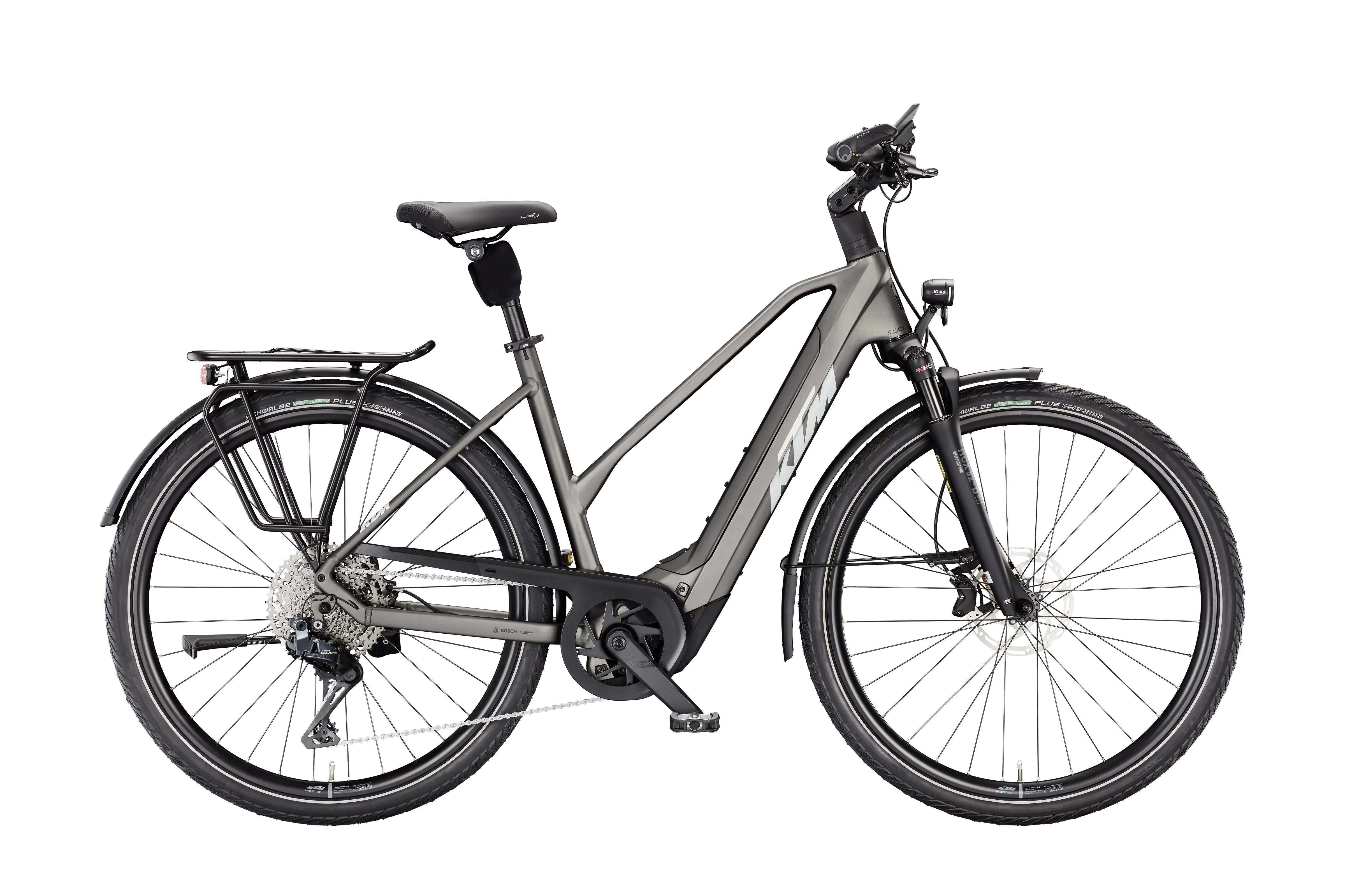Rama: Macina Trekking Onroad Alloy 6061|PT800 Bosch BDU38/T5940 Widelec: Suntour NCX32-D Air LO 63mm 1 1/8 Tylna przerzutka: Shimano CUES Di2 U8050-11 SGS shadow Manetki: Shimano CUES Di2 EN605 Switch Hamulce: Tektro TKD-139 / HD-E730 4-Piston Tarcze hamulcowe: Tektro TR-45 2.3mm CL 180 Opona przód: Schwalbe Energizer Plus Perf. GreenGuard 50-622 Reflex Opona tył: Schwalbe Energizer Plus Perf. GreenGuard 50-622 Reflex Kierownica: KTM Line rizer20 640mm Mostek: KTM Line adjust. 0-60° ICR Stery: Acros AICR internal 1.5"-1.5" Chwyty: Ergon GP30 Siodło: Selle Royal Lookin Sztyca: Suntour SP25-NCX suspension 30.9/350 Zacisk: KTM Line JD-SC99 - 34,9mm Korba: KTM E-COMP2 ISIS 170mm Q8 Łańcuch: KMC e11 Sport EPT e-bike Kaseta: Pedały: Trekking-Pedal VP-616 anti-slip Oświetlenie przód: B&M IQ-XS 80Lux Oświetlenie tył: B&M Toplight 2C Bagażnik: KTM tour snap-it 2.0/monkeyload|childseat + rack clip Podpórka: KTM 28" adjustable MY2025
