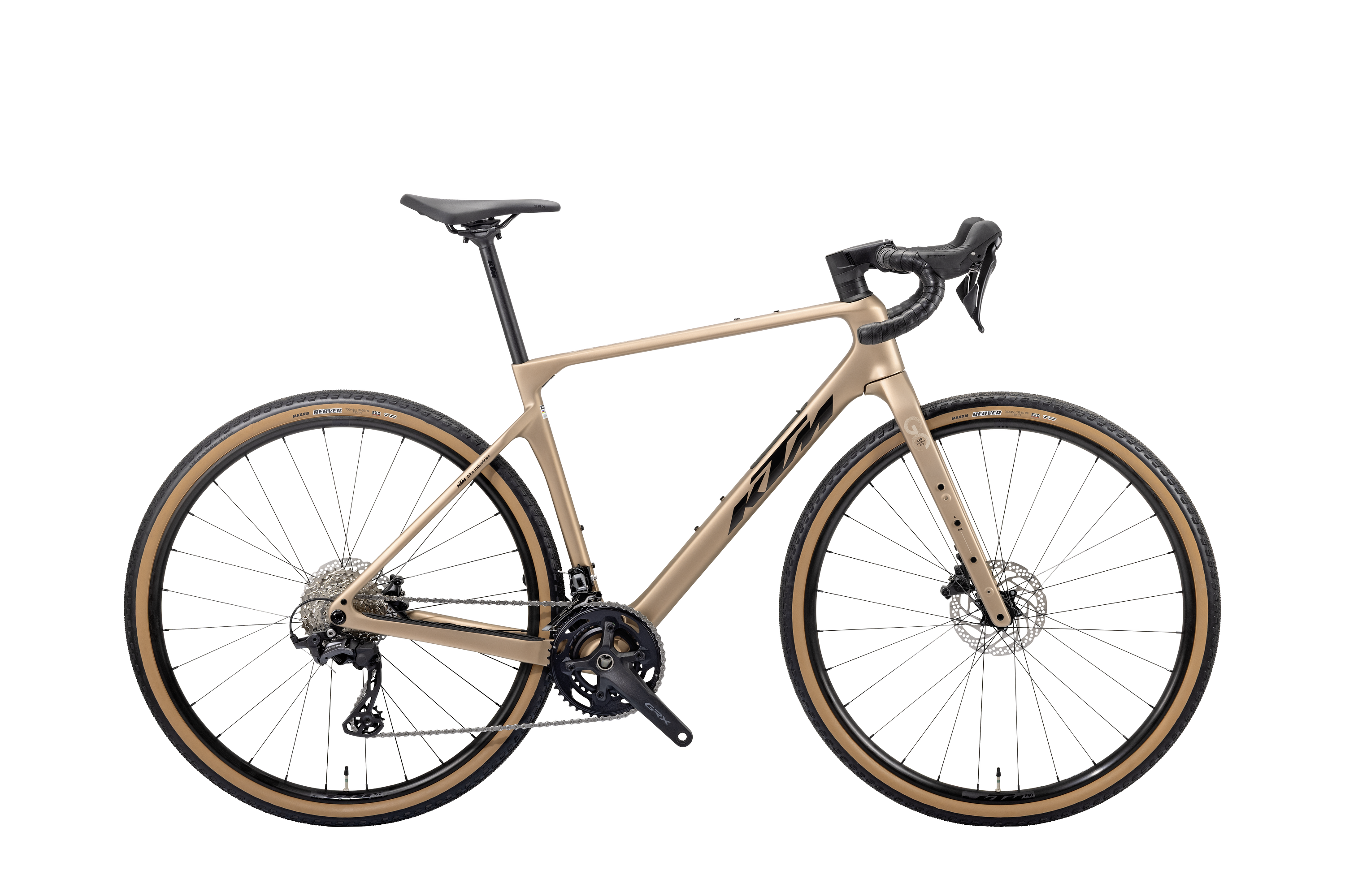Rama: Gravelator Carbon 2x/R6982 Widelec: Gravel Carbon Fork F18 w/ mount Tylna przerzutka: Shimano GRX RX820-12 shadow+ Manetki: Shimano GRX RX610/RX410 Tarcze hamulcowe: Shimano RT30 CL 160 Koła: KTM Pro Gravel CL 100/12TA|622x25TC TLR by Ibex / KTM Pro Gravel CL 142/12TA|622x25TC HG9 TLR by Ibex Opona przód: Maxxis Reaver EXO/TR DUAL 45-622 Opona tył: Maxxis Reaver EXO/TR DUAL 45-622 Kierownica: KTM TEAM II Gravel 20° Mostek: KTM TEAM Road -7° ICR Stery: Acros AICR intern 1.1/8"-1.5" angle lim Chwyty: KTM tape Siodło: Selle Royal SRX Sztyca: KTM TEAM II 27.2/400 Korba: Shimano GRX RX610-12 46-30 Suport: Shimano RS500 pressfit Road Łańcuch: Shimano M6100-12 Kaseta: